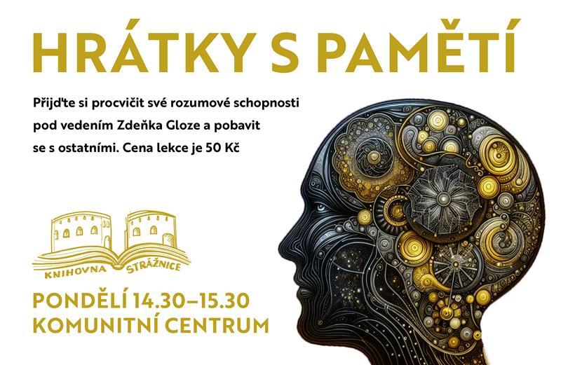 Hrátky s pamětí pod vedením certifikovaného trenéra paměti Zdeňka Gloze probíhají pravidelně každé pondělí ve 14.30–15.30 v komunitním centru. Vítáni jsou všichni! Ti, kteří si chtějí procvičit svoji paměť a také ti, kteří nechtějí jen sedět sami doma. Přijďte a pobavte se! Vezměte s sebou: brýle, tužku a dobrou náladu. Cena 50 Kč/lekci