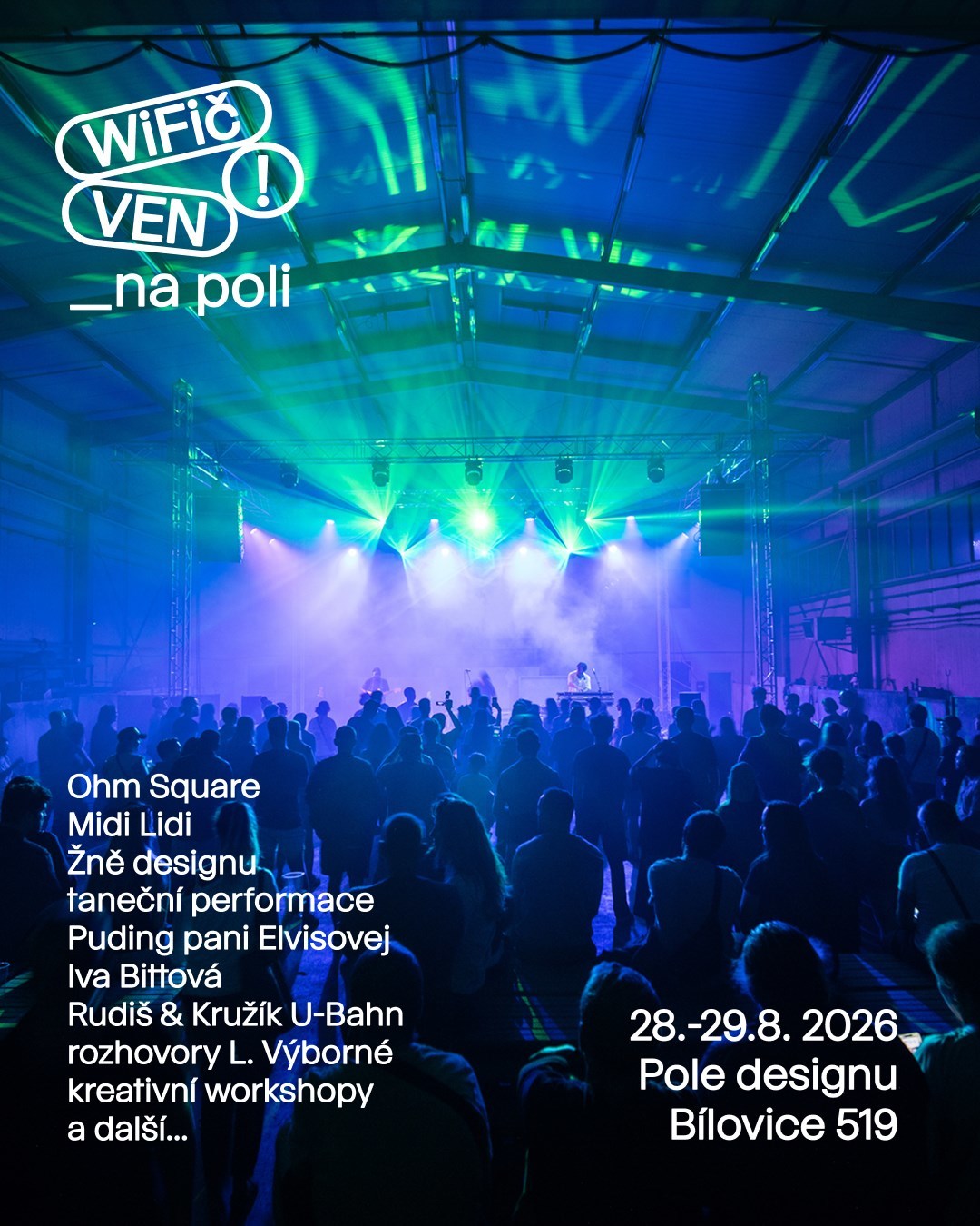 WiFič VEN!_na poli. Jedním slovem zážitek. Areál Pole designu v Bílovicích se už podeváté stane místem, kde se propojují styly, žánry i generace. V prostředí, kde emoce dostávají prostor, se můžete těšit na koncerty kapel Ohm Square, Midi Lidi nebo Puding pani Elvisovej. Vystoupí také Iva Bittová, Jaroslav Rudiš & Petr Kružík – U-Bahn, Anna Vaverková a MAT 213.