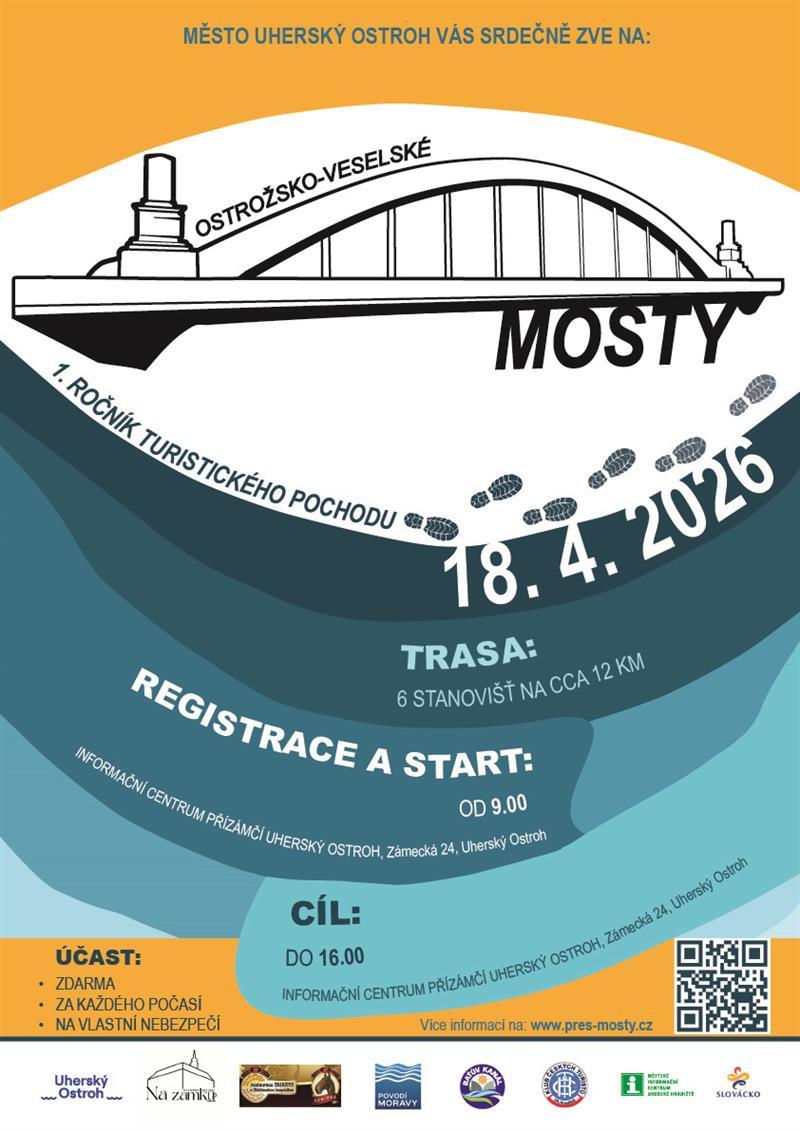 Srdečně zveme na 1. ročník turistického pochodu Ostrožsko - veselské mosty 2026! Čeká Vás přibližně 12 km dlouhá trasa se 6 stanovišti, krásné okolí a pohodová atmosféra pro malé i velké.