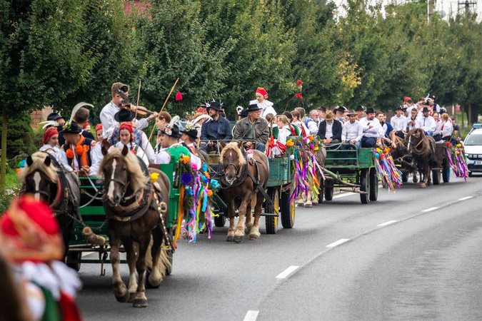 Před sobotním polednem začal průvod krojované chasy na ozdobených koňských povozech. Nechyběla dechová hudba Šohajé a místní cimbálová muzika. Průvod směřoval od Zarazic, kde vyzvedl mladší stárky, kterými letos byli Jiří Pavka (20) a Petra Crhounková (23). Po stárkovském sóle v Zarazicích se naplnily koňské vozy krojovanými a přesunuly se na opačnou stranu města do Milokoště pro staršího stárka Radima Silnicu (25) a starší stárku, která byla letos až z Londýna. Místní rodačka Anna van Loon na své kořeny nezapomněla a ráda se oblékla do místního kroje.