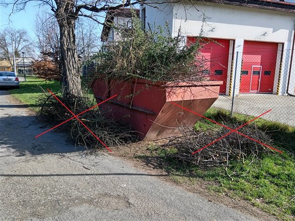 Město apeluje na své občany, aby větve určené do velkoobjemových kontejnerů byly vhodně zkráceny a nebyly zabalené v plastových obalech či svázané dráty. Důrazně prosíme, aby obyvatelé neprováděli nelegální skládky větví mimo kontejnery, jak je dokumentováno na fotografiích.